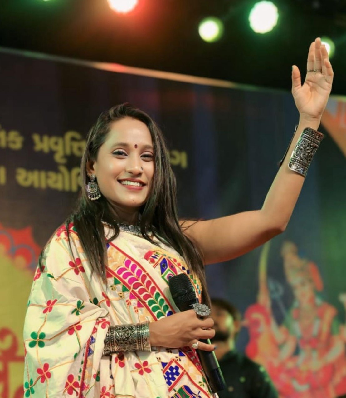 Sonu Charan — whose real name is Sonal Gadhvi, is a renowned Gujarati folk singer celebrated for her powerful voice and captivating Garba performances. Hailing from Ahmedabad, Gujarat, she has made significant contributions to the Gujarati music scene, particularly in traditional folk and devotional genres. "Sonu Charan is a very popular singer from Gujarat, known for her powerful presence in the folk music scene. She has been in the singing profession for over 15 years. With a strong social media presence, she currently has over 203,000+ followers on Instagram."